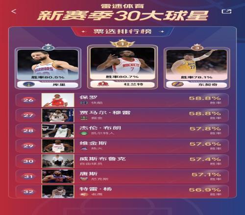 雷速体育10月14报道 雷速NBA新赛季30大球星活动正在如火如荼地进行中。