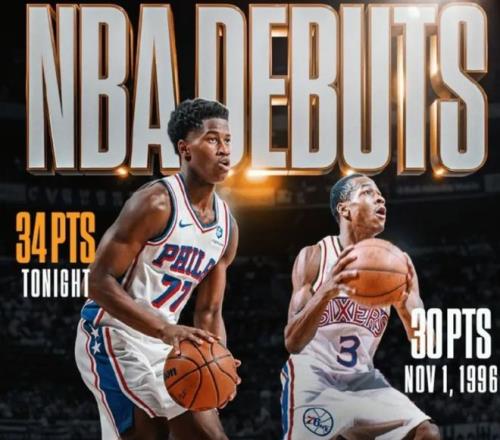 全场比赛,埃奇库姆打了足足42分钟,拿到了34分7篮板3助攻1抢断。首秀34分,埃奇库姆破了艾弗森保持的76人队新秀首战得分纪录,此前艾弗森在自己的新秀年首场比赛拿下30分2篮板6助攻。